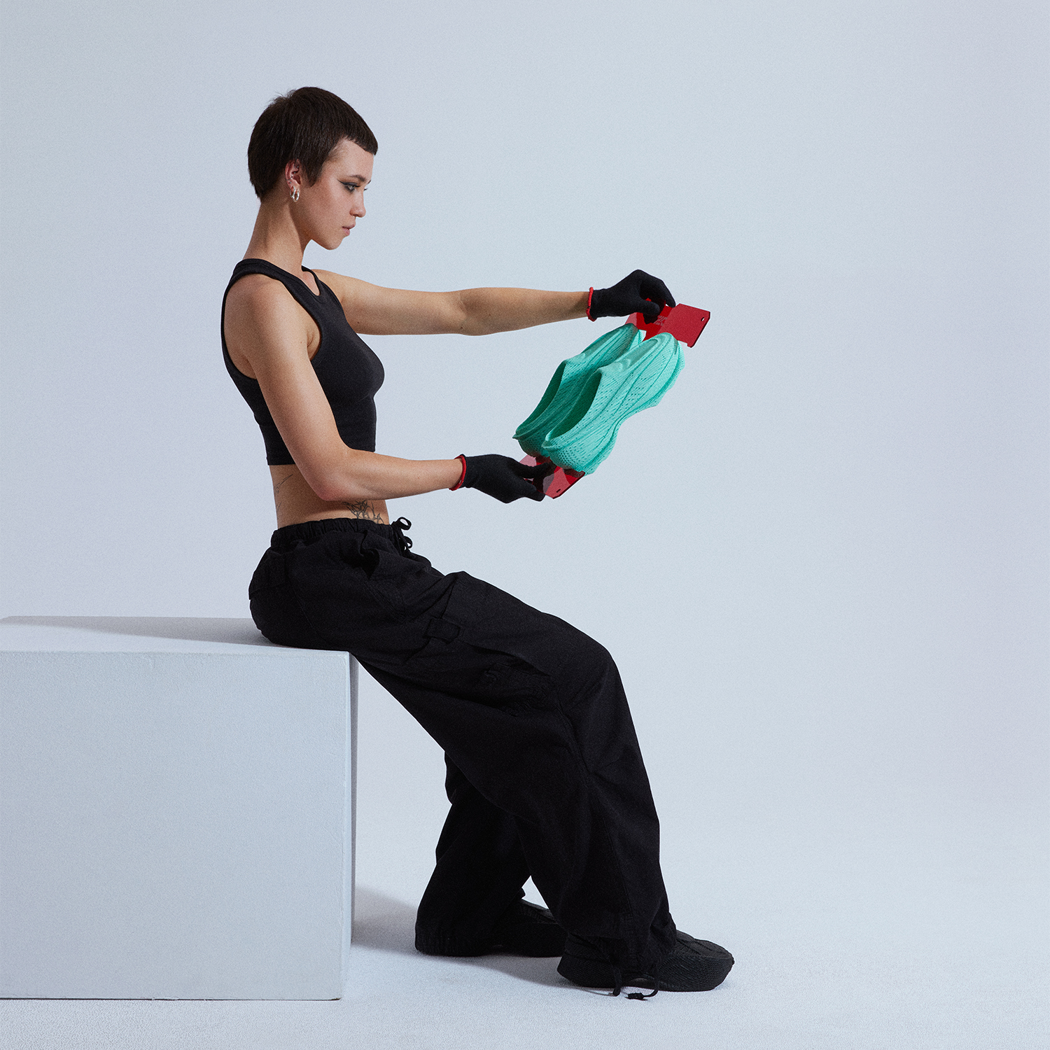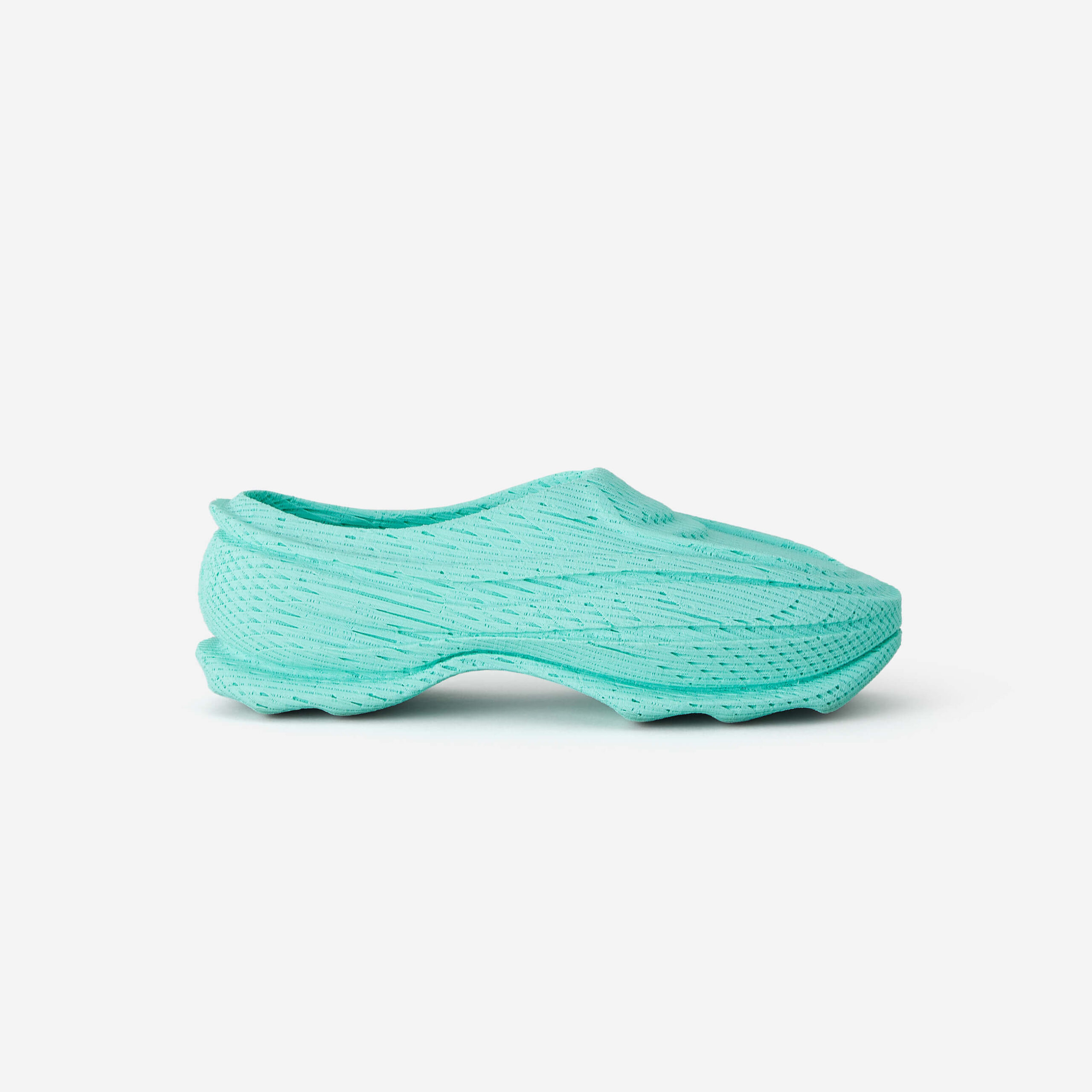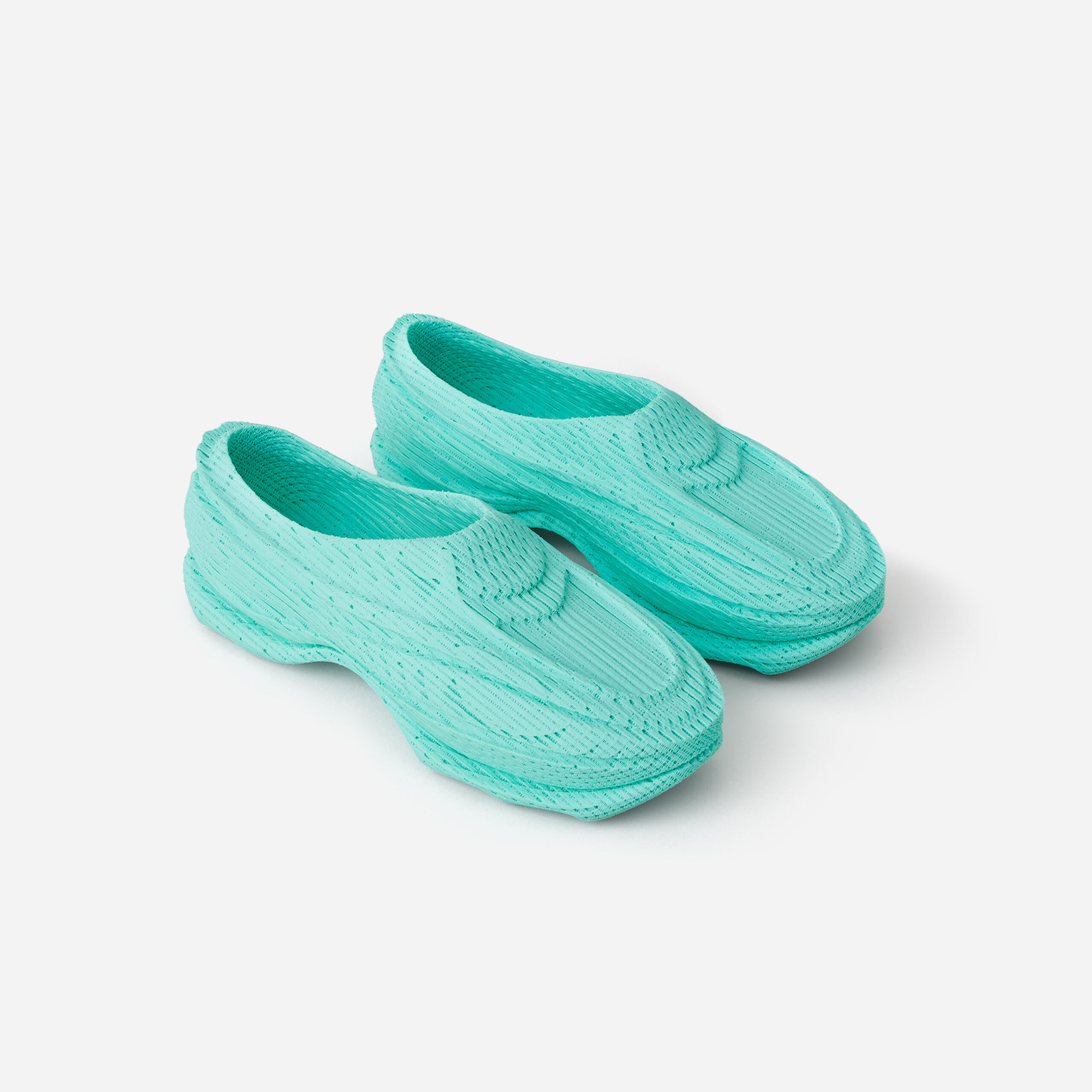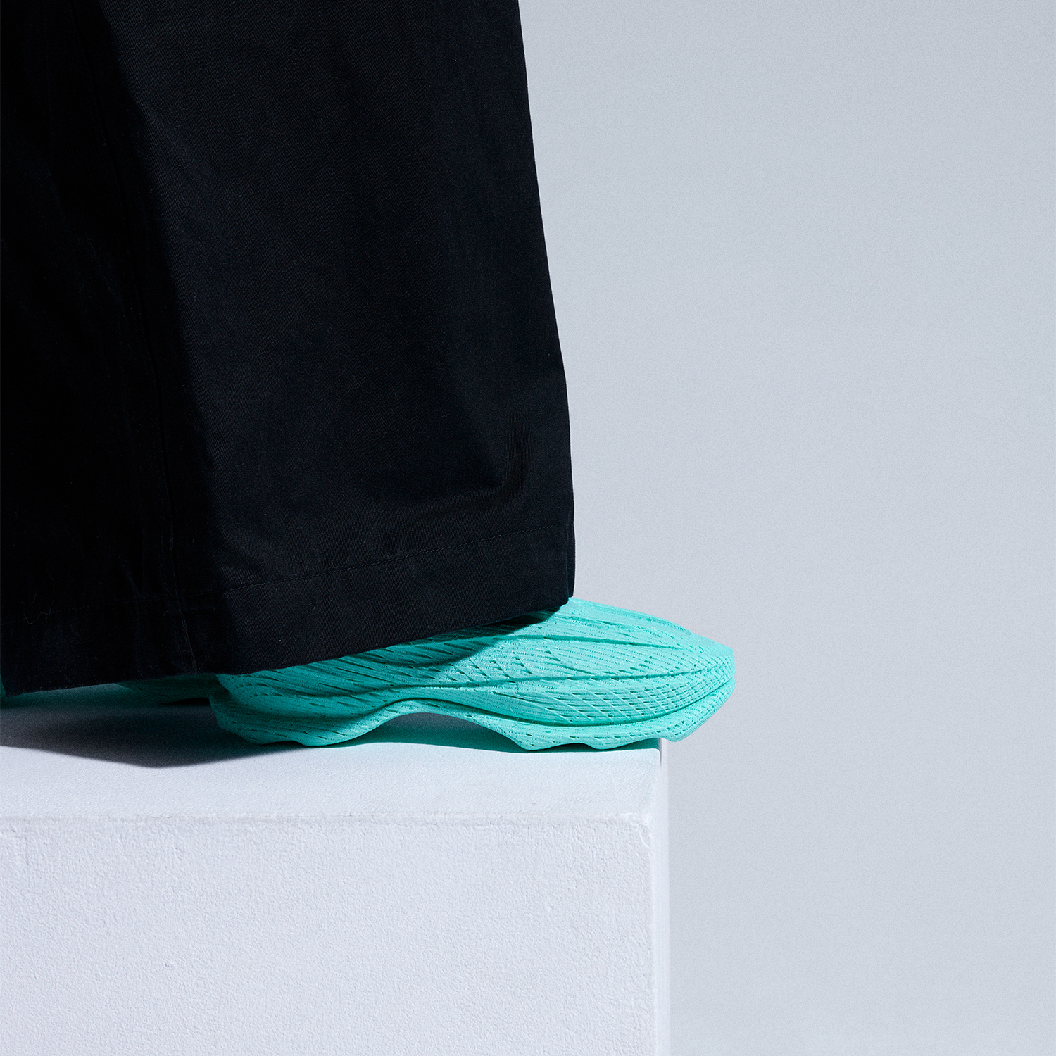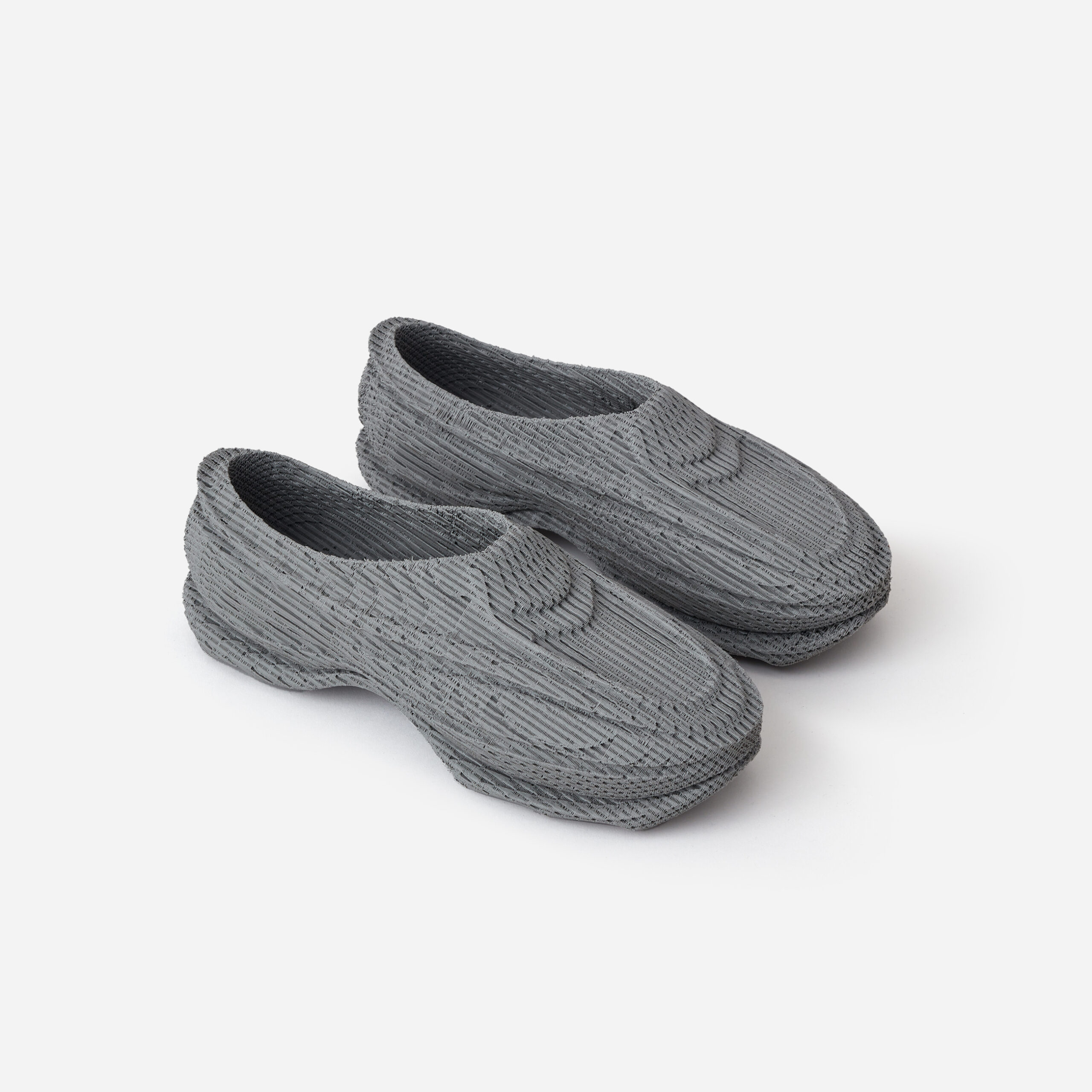 A_984 is the first shoe designed for production using 3D printing. The first version was printed in Barcelona in December 2022 at the Footwearology space. Then presented at MICAM Milano in early 2023. What characterized the first project was the so-called “mixed texture”, i.e. combined FDM printing techniques, allowing visually to obtain the effect of various textures on the shoe’s surface. In early 2023, the second version was created, printed in the zulu kuki studio. The design has changed in terms of adaptation to the foot, type of material, printing parameters and color. The idea was to create a shoe that combines dynamic shapes inspired by motorcycles with the classic look of loafers (front part of the upper). It was tested by dancers to check its flexibility.